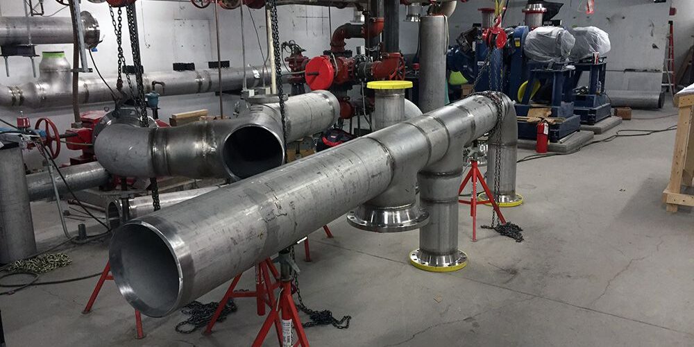 Integration of new piping into existing plant infrastructure.